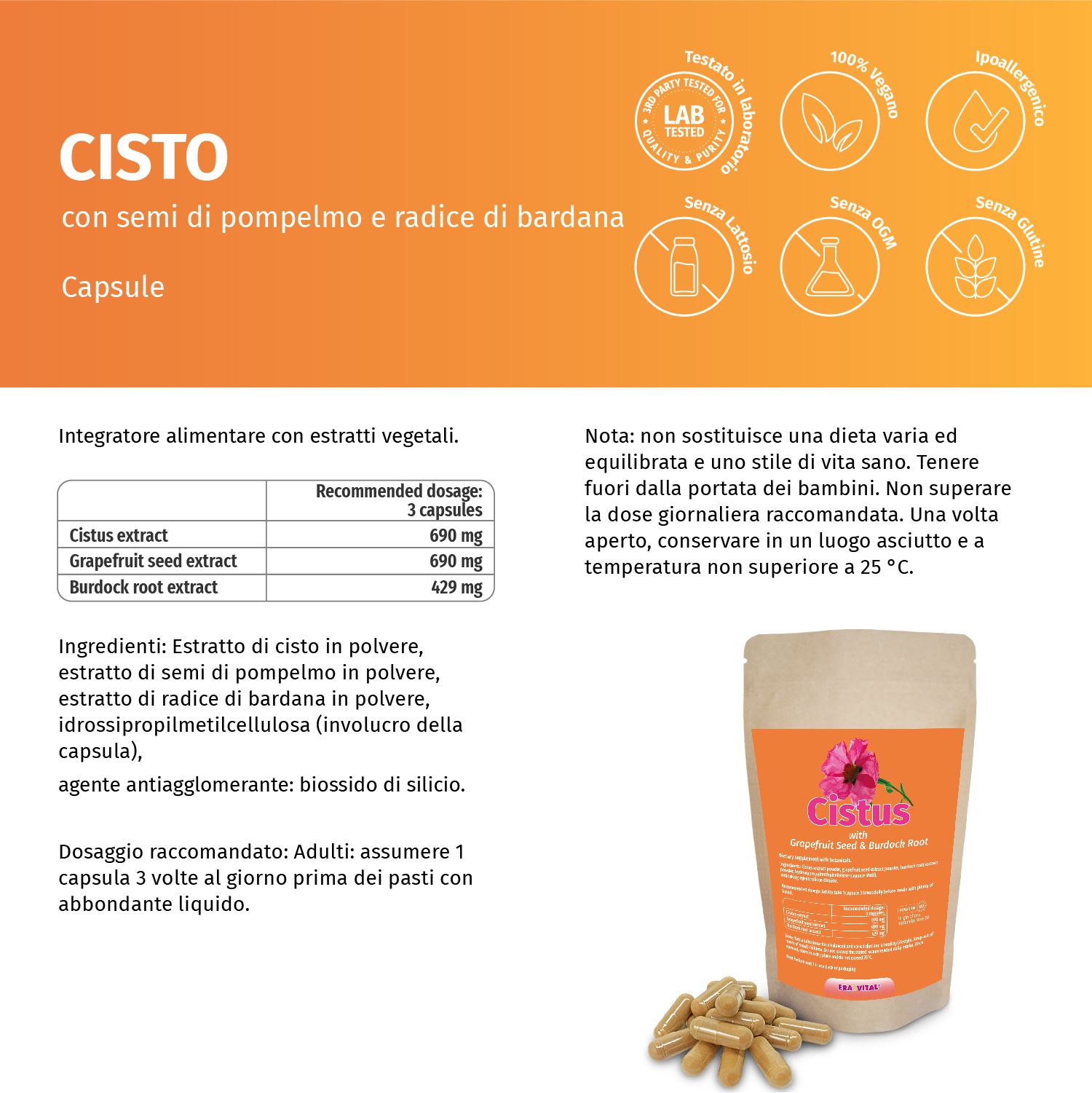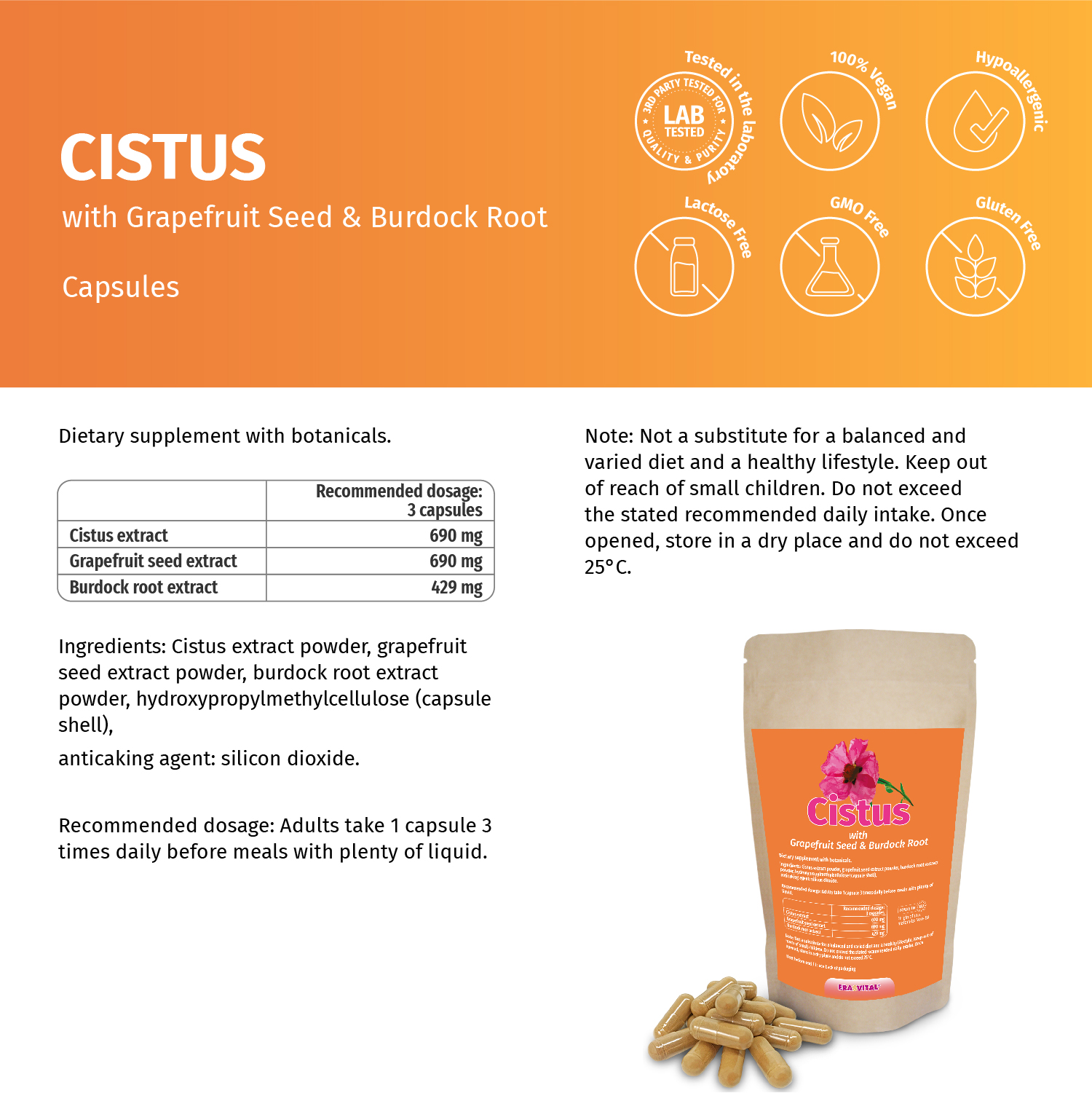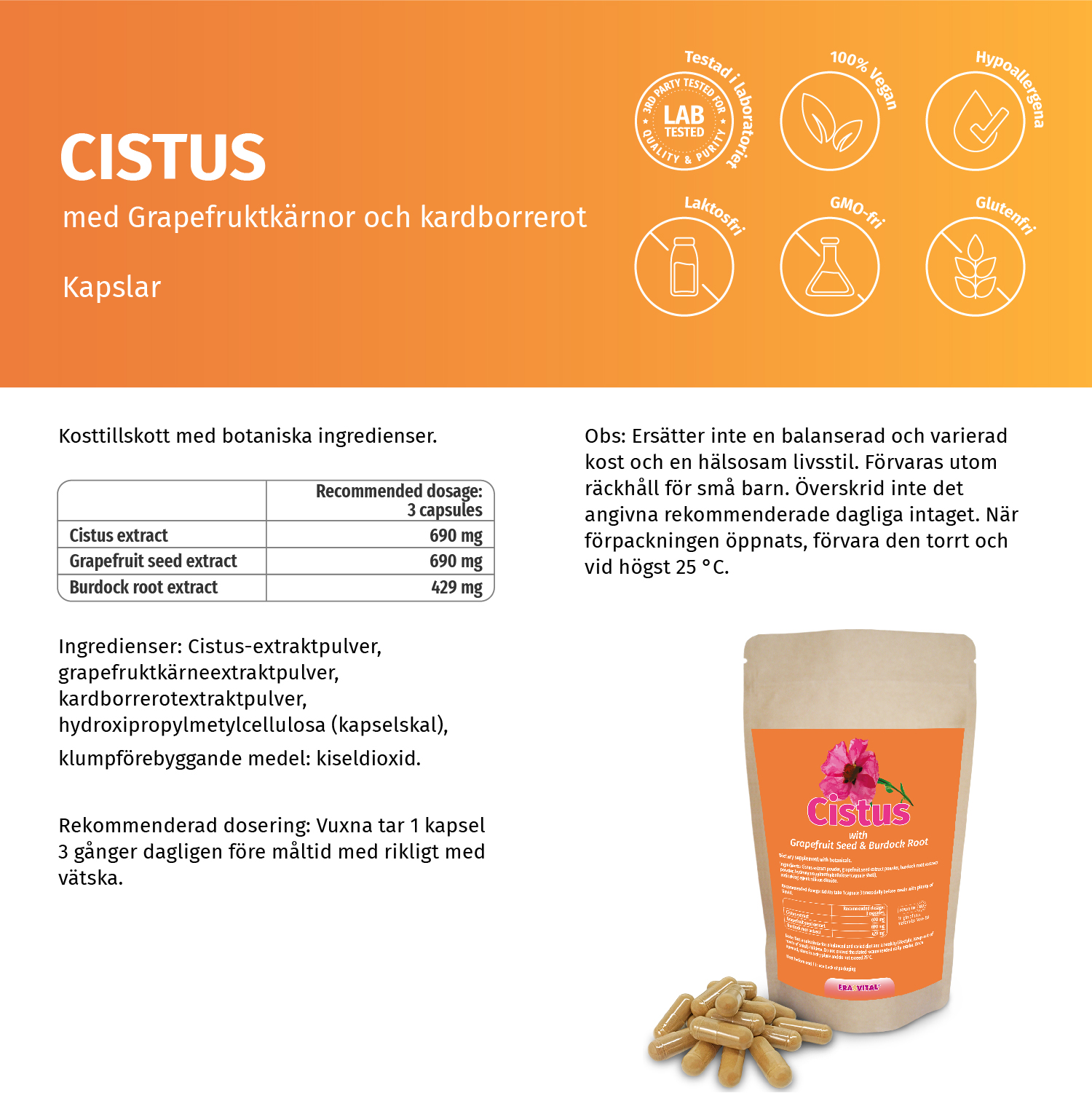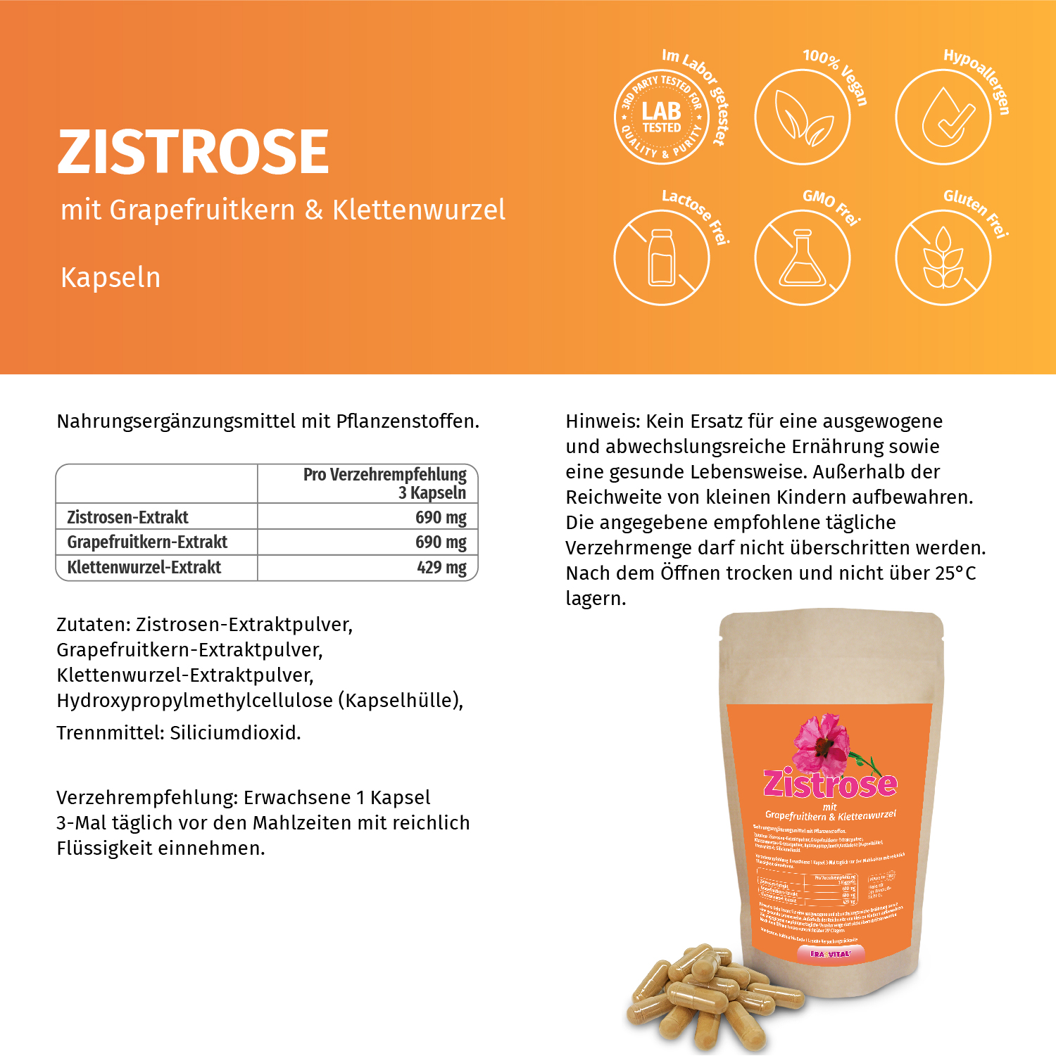 Zistrose-, Grapefruitkern-, Klettenwurzel-Extrakten, Kapseln